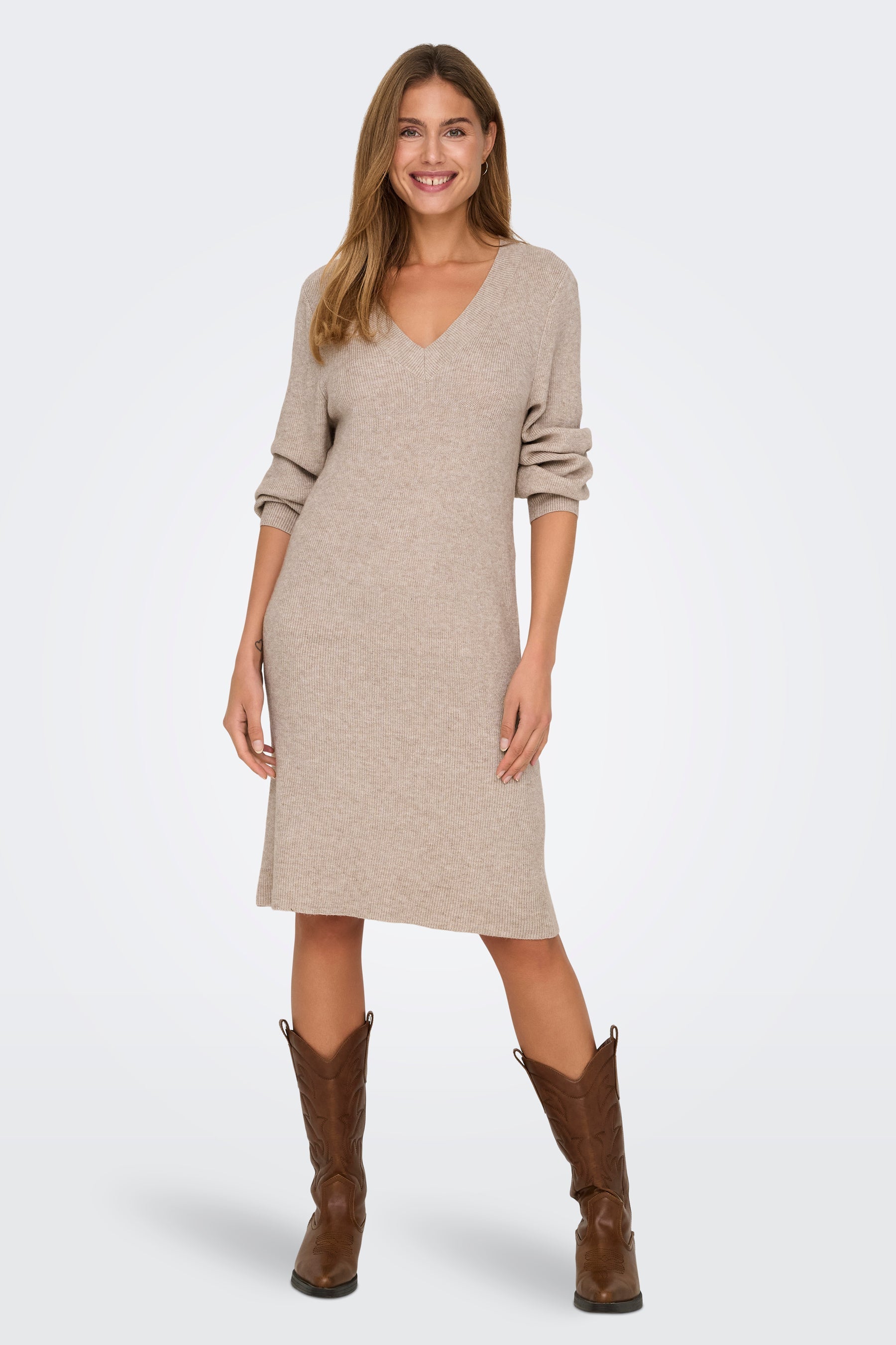 Maak je klaar voor elke gelegenheid met onze casual gebreide jurk, perfect te stylen voor werk, school of vrije tijd.