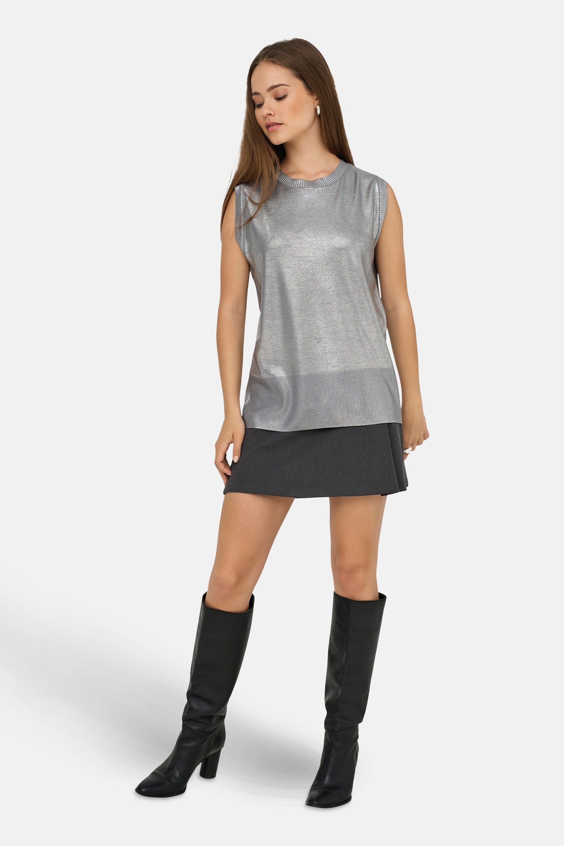 Zilveren Mouwloze Top